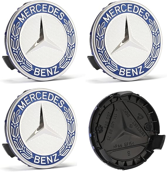Mercedes Benz 75mm Light Blue Chrome Wheel Centre Caps Laurel Leaf Set